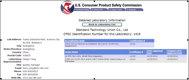 美國(guó)消費(fèi)者產(chǎn)品安全委員會(huì)CPSC授權(quán)